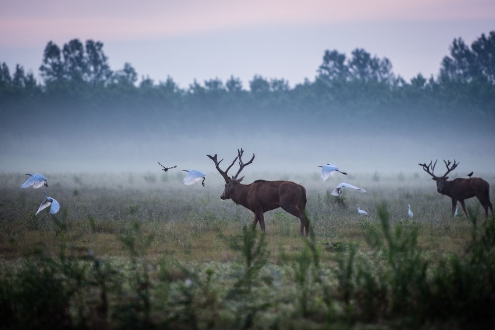 8月1日,兩頭麋鹿在湖北石首麋鹿國家級(jí)自然保護(hù)區(qū)內(nèi)活動(dòng)。