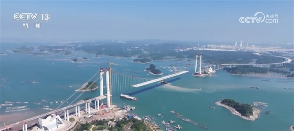 ??????這里是廣西欽州市的龍門大橋,從空中俯瞰,建設(shè)中的龍門大橋宛若一條巨龍橫臥于碧海之上。龍門大橋全長(zhǎng)7.6公里,是目前廣西在建的最長(zhǎng)跨海大橋。通車后,防城港與欽州港的時(shí)空距離由原來的1.5小時(shí)縮減至25分鐘左右,助力西部陸海新通道建設(shè)。