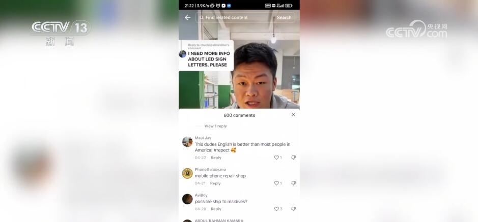 央視網(wǎng)消息:視頻里這個(gè)自稱“Tony”的小伙名叫竹宇,今年24歲。雖說(shuō)講著一口地道、流利的英語(yǔ),但卻打小是在廣東東莞長(zhǎng)大的,沒有任何國(guó)外留學(xué)或生活的經(jīng)歷。他現(xiàn)在主要的工作,就是通過拍攝這些短視頻為廣州白云區(qū)一家生產(chǎn)燈牌的外貿(mào)企業(yè)招攬海外客戶,效果怎么樣?一起來(lái)看。