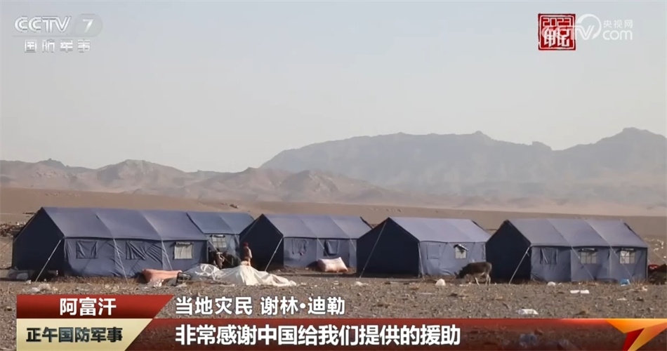 2023年10月,阿富汗赫拉特省連續(xù)發(fā)生多次6級以上強(qiáng)震,中國空軍兩架運(yùn)-20運(yùn)輸機(jī)搭載著中國政府和中國紅十字會(huì)提供的近50噸人道主義救援物資飛往阿富汗。在受地震影響最嚴(yán)重的赫拉特省津達(dá)詹區(qū),一頂頂中國援助的藍(lán)色帳篷挺立在廢墟旁的空地上。