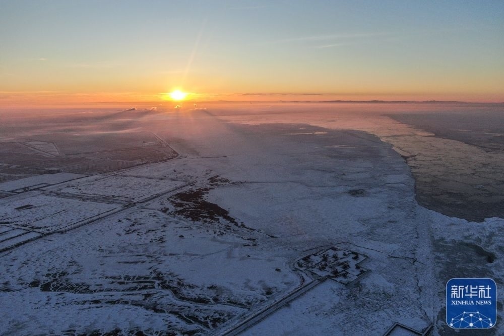 這是1月1日在遼寧省盤錦市中國(guó)石油遼河油田拍攝的日出(無(wú)人機(jī)照片)。新華社記者 潘昱龍 攝