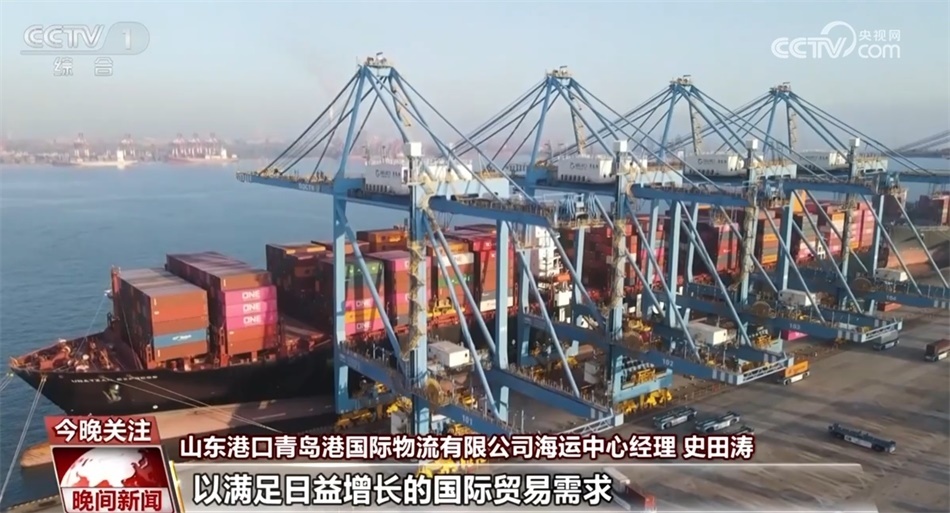 山東臺(tái)記者 辛鵬:我現(xiàn)在是在青島港前灣港區(qū)集裝箱自動(dòng)化碼頭,靠泊在我身后105泊位的“烏奈札快航”即將起航,開啟中國山東至美國東部的新年首航之旅。