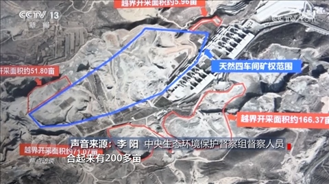 中央生態(tài)環(huán)境保護(hù)督察組督察人員李陽(yáng):“越界開采了,合起來(lái)有200多畝?!?/p>