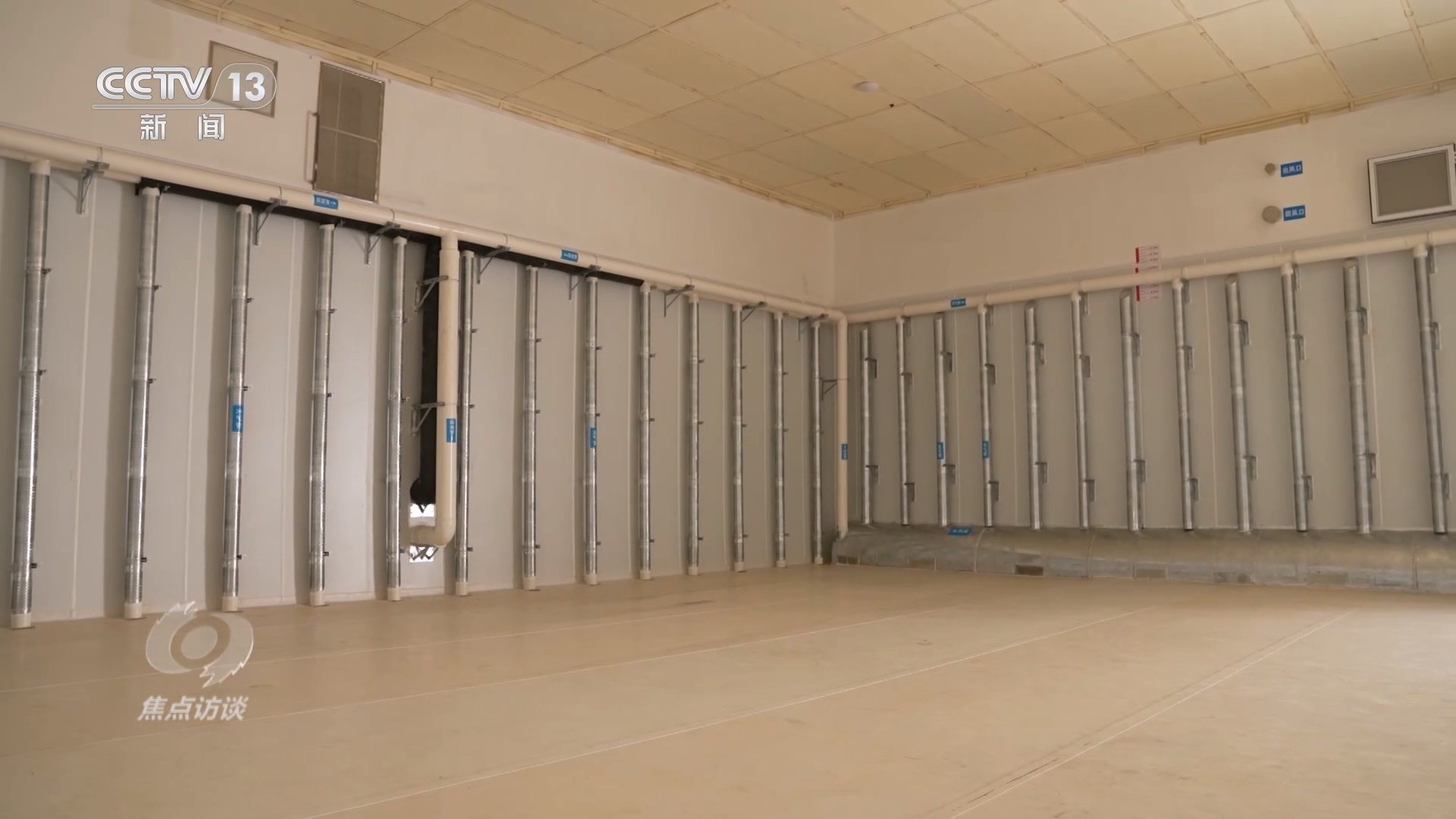 當(dāng)工作人員打開這座暫時空著的倉庫時,墻壁上的一排排管道十分搶眼,天氣熱的時候,這四面墻的氣道里都會充入冷空氣,再加上頂部的風(fēng)道,這“五面立體動態(tài)控溫技術(shù)”就相當(dāng)于給糧倉內(nèi)外加了一道隔離帶,低溫保鮮。