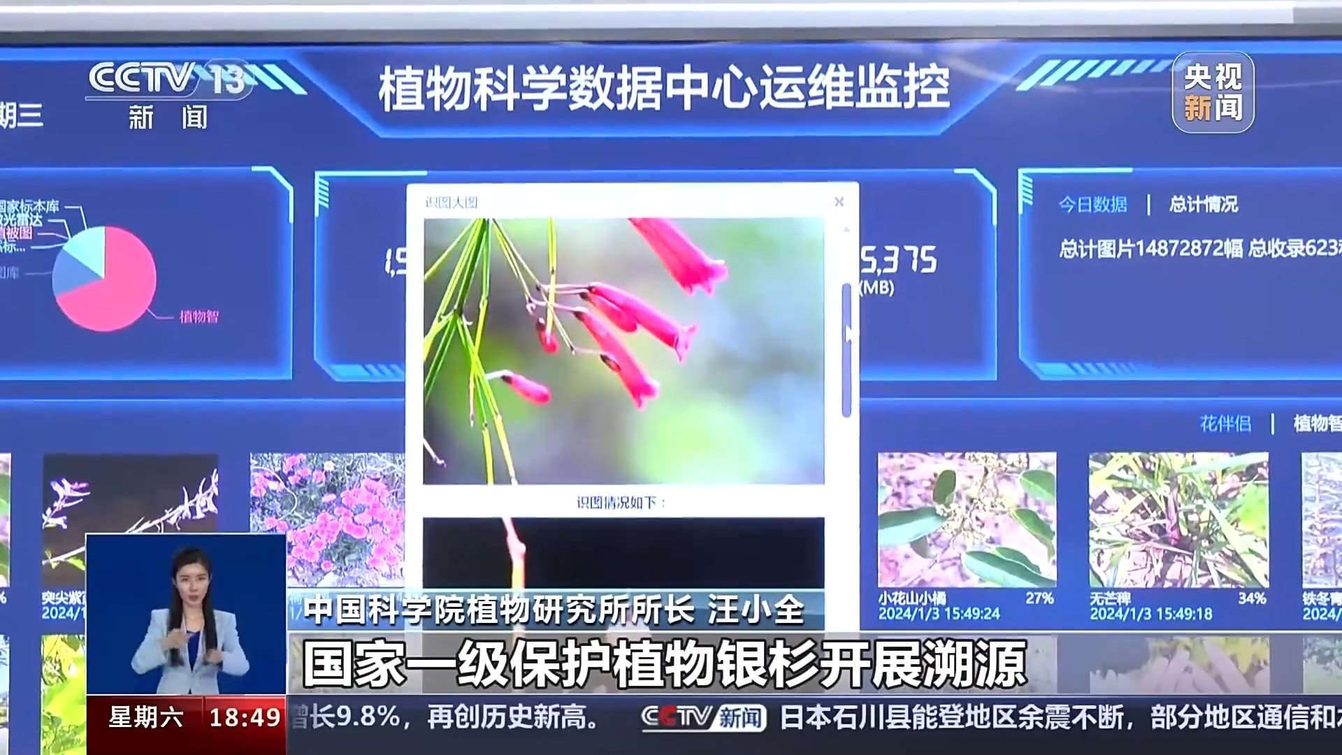 工作人員告訴記者,在植物大數(shù)據(jù)平臺上,全國1000多種重點保護野生植物的情況,都可以在數(shù)據(jù)平臺的大屏幕上,得到直觀的體現(xiàn)。