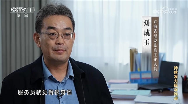 竇閩(中央紀(jì)委國家監(jiān)委機關(guān)工作人員):中央紀(jì)委國家監(jiān)委始終把落實中央八項規(guī)定精神作為監(jiān)督執(zhí)紀(jì)的底線性任務(wù),決不允許以高原地區(qū)喝酒驅(qū)寒為違規(guī)吃喝找借口,決不允許以鄉(xiāng)黨文化根深蒂固為喝酒聚餐找理由。查辦案件過程中,我們堅持與以案促改促治同謀劃、同部署、同推進,指導(dǎo)青海省委、省紀(jì)委監(jiān)委在全省開展專項教育整治,推動中央八項規(guī)定精神在高原大地落地生根。