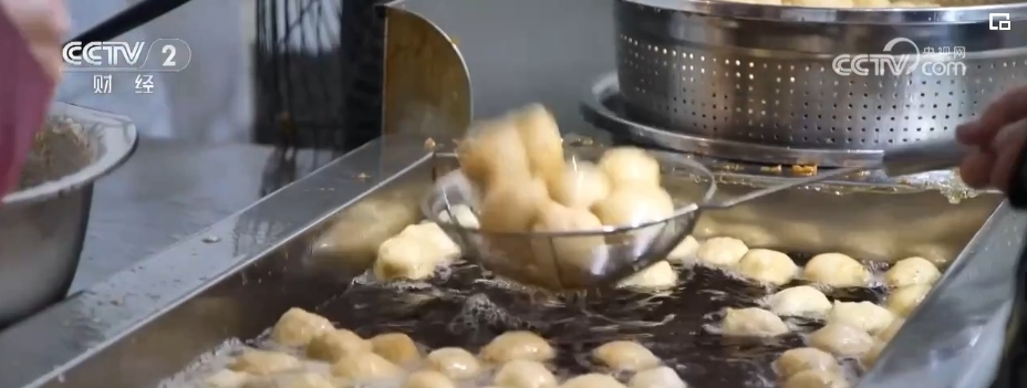 在鹽城市建湖縣的一家魚(yú)圓門(mén)店里,工人們正在炸制魚(yú)圓。分裝、稱重、封口后,不一會(huì)兒工人們就把包裝好的魚(yú)圓擺滿了工作臺(tái)。