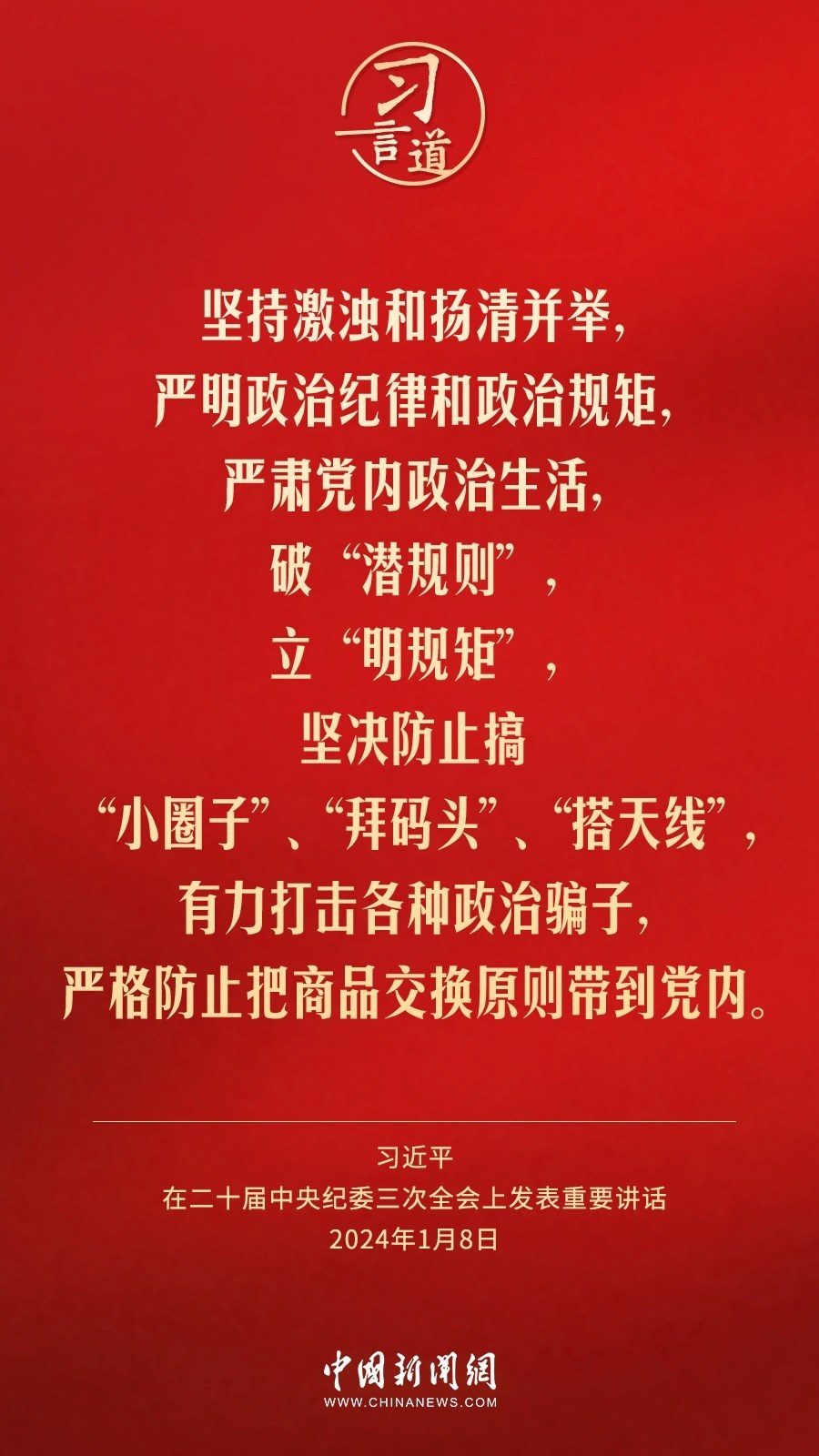 中共中央總書記、國家主席、中央軍委主席習近平8日上午在中國共產黨第二十屆中央紀律檢查委員會第三次全體會議上發(fā)表重要講話。習近平指出——