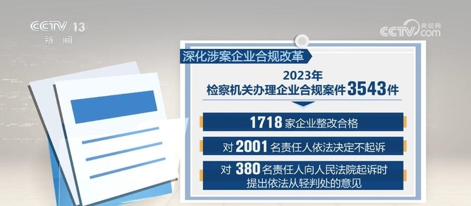 深化涉案企業(yè)合規(guī)改革。2023年檢察機(jī)關(guān)辦理企業(yè)合規(guī)案件3543件,其中1718家企業(yè)整改合格,對2001名責(zé)任人依法決定不起訴,對380名責(zé)任人向人民法院起訴時(shí)提出依法從輕判處的意見。加強(qiáng)知識產(chǎn)權(quán)綜合司法保護(hù)。審查起訴侵犯知識產(chǎn)權(quán)犯罪案件2.8萬人,同比上升53.3%;受理知識產(chǎn)權(quán)民事行政訴訟監(jiān)督案件2240件,同比增長1.7倍。持續(xù)加大對信息技術(shù)、生物醫(yī)藥、新能源等高科技領(lǐng)域知識產(chǎn)權(quán)保護(hù)力度。針對涉知識產(chǎn)權(quán)惡意訴訟、惡意侵權(quán)多發(fā)問題,持續(xù)組織開展專項(xiàng)監(jiān)督,促進(jìn)營造良好創(chuàng)新生態(tài)。