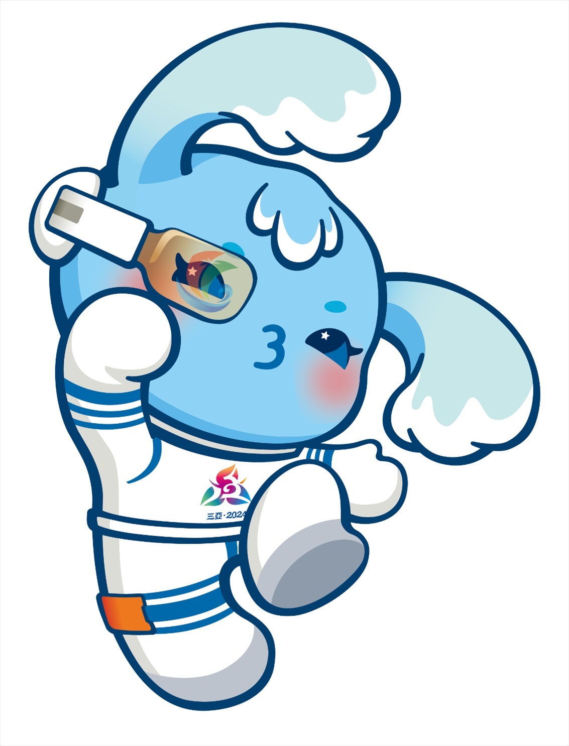 吉祥物由清華大學(xué)美術(shù)學(xué)院團(tuán)隊(duì)創(chuàng)作完成。吉祥物“吉貝”是一只海精靈,名字取自《尚書·禹貢》和蘇東坡的詩詞,在歷史上專指“黎錦”這一中華民族優(yōu)秀傳統(tǒng)文化的典型代表,黎錦也是世界級非物質(zhì)文化遺產(chǎn),同時(shí)“吉貝”也有“吉祥寶貝”的意思;海精靈身著宇航服,寓意星辰大海,佩戴的AI智能眼鏡中映射出海南自由貿(mào)易港的標(biāo)志,寓意科技與現(xiàn)代化。海精靈展現(xiàn)了中華民族團(tuán)結(jié)奮斗、揚(yáng)帆征程,攜手邁向中國式現(xiàn)代化的精氣神。