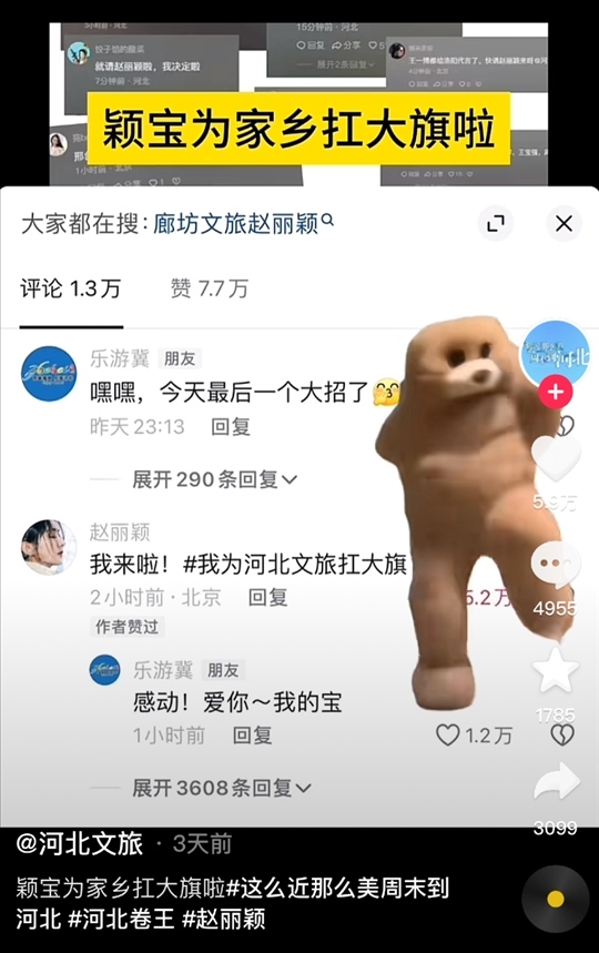 這還還還不夠,河北文旅也“搖人”了,趙麗穎、孫穎莎等一眾名人被請了過來為家鄉(xiāng)助力!