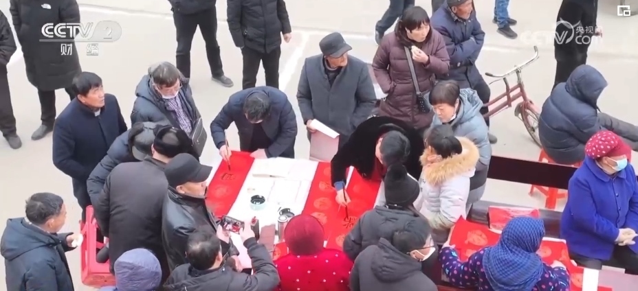 除了琳瑯滿目的年貨,當?shù)剡€準備了豐富多彩的文藝節(jié)目?;磩 ⒖彀?、小品,好戲連臺?,F(xiàn)場創(chuàng)作的大紅“?!弊趾鸵环矐c春聯(lián),讓人們感受著濃濃的“年味”。