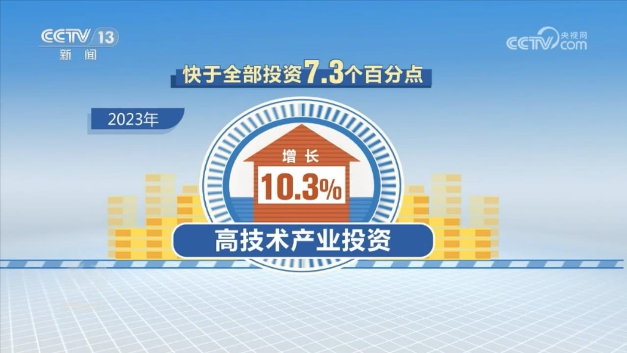 在投資領域,受房地產(chǎn)市場深度調整影響,2023年全年全國固定資產(chǎn)投資比上一年增長3%,而扣除房地產(chǎn)開發(fā)投資,民間投資增長9.2%。尤為值得注意的是,2023年高技術產(chǎn)業(yè)投資增長10.3%,快于全部投資7.3個百分點。其中,高技術制造業(yè)、高技術服務業(yè)投資分別增長9.9%、11.4%。