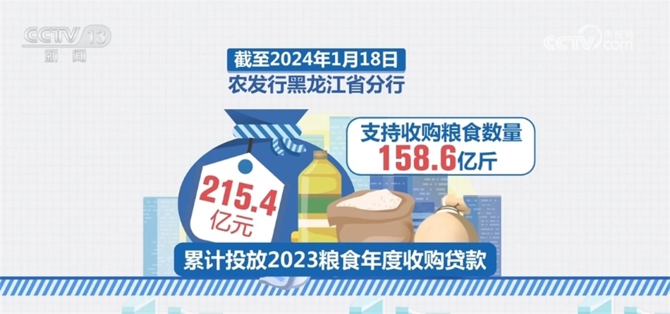 黑龍江是我國秋糧主產(chǎn)區(qū)。截至2024年1月18日,農(nóng)發(fā)行黑龍江省分行累計投放2023糧食年度收購貸款215.4億元,支持收購糧食數(shù)量158.6億斤。其中,累計投放政策性貸款72.7億元,累計投放市場化貸款142.7億元。