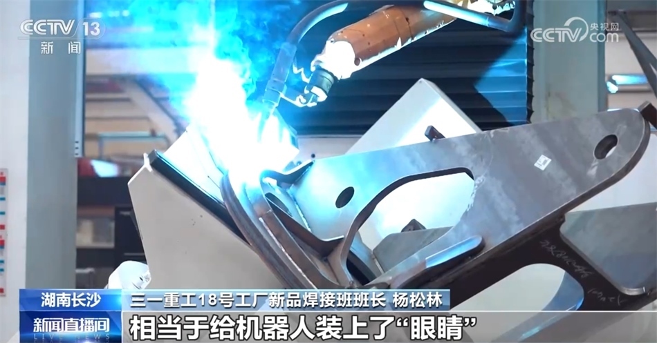 三一重工18號工廠新品焊接班班長 楊松林:這就是我工作的地方。這邊有一排排的工作島,穩(wěn)居“C”位的就是我們的轉臺焊接工作島。依托數(shù)字化電弧跟蹤技術,相當于給機器人裝上了“眼睛”,焊槍可以自己去尋找鎖定,并跟蹤焊點,實現(xiàn)連續(xù)性的焊接,在行業(yè)還是首創(chuàng),我們的效率和質量都大大提升了。