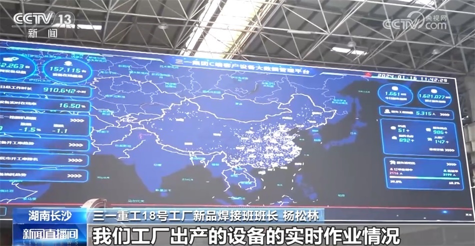 三一重工18號工廠新品焊接班班長 楊松林:來我們“燈塔工廠”參觀,我們都會看到一個超級大的屏幕,每一個閃光點都代表著我們工廠出廠的設備的實時作業(yè)情況。這些閃光點最后就形成了一個三一的挖掘機指數(shù),就相當于我們業(yè)內工程行業(yè)的一個晴雨表,其實我們還是挺自豪的。