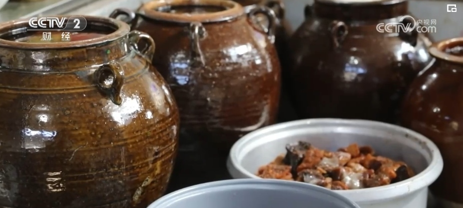 云南施甸縣,臨近春節(jié)家家戶戶開始煉豬油,制作“油罐肉”喜迎新年。油脂豐腴、御寒潤燥的豬油是制作各種菜品不可或缺的動物油脂,也可以將豬肉封存于油罐之中。一塊塊五花肉、里脊肉、豬肚、粉腸……在油鍋中水分逐步揮發(fā),釋放美妙的芳香。