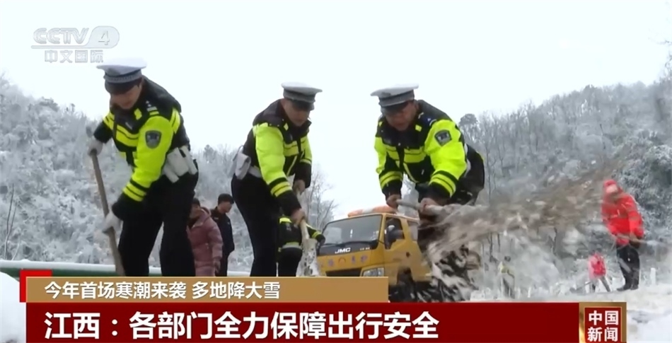 從21日開始,江西各地迎來了今年首場(chǎng)大范圍降雪天氣。德安縣迅速啟動(dòng)惡劣天氣應(yīng)急預(yù)案,加強(qiáng)重點(diǎn)路口、路段的交通秩序管控。在梅嶺風(fēng)景區(qū),因?yàn)榇笱?、路面出現(xiàn)結(jié)冰,當(dāng)?shù)夭扇 跋迺r(shí)、限路、限流”的工作措施,對(duì)景區(qū)道路適時(shí)實(shí)施交通管制,保障游客出行游玩安全。在九江市武寧縣,工作人員清理倒伏的樹枝、撒融雪劑、鏟冰除雪、疏導(dǎo)交通,為過往的司機(jī)提供幫助。