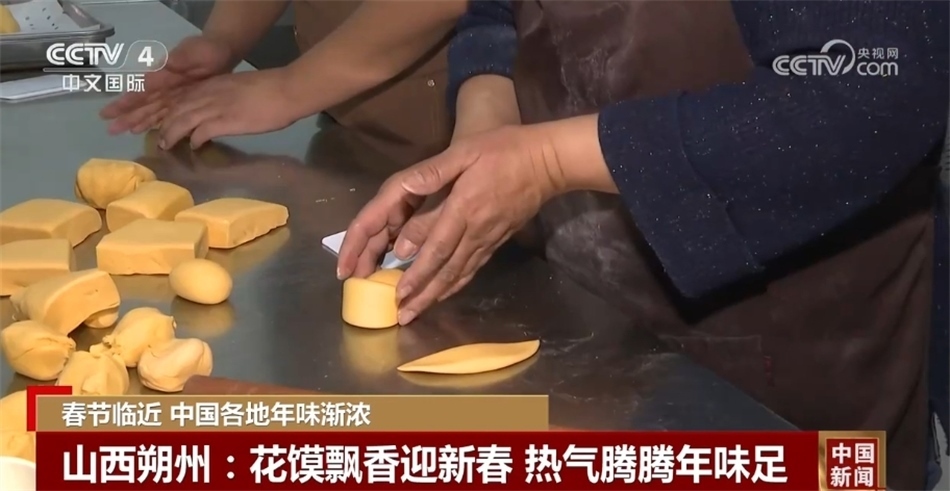 在山西朔州市的一家面塑花饃店里,面點師傅們正在趕制花饃等傳統(tǒng)美食,為即將到來的新春佳節(jié)做足準備。由果蔬調(diào)色、純手工制作的花饃不僅口感好,而且造型精美,備受顧客青睞。