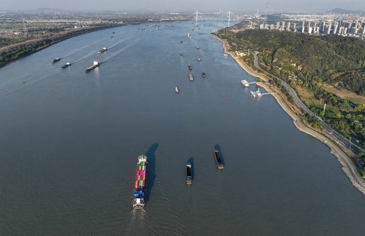冬季枯水期,長江江蘇段依舊浩浩蕩蕩,萬噸巨輪往來如梭。這里是長江黃金水道“鉆石航段”,承載全線七成貨運量、全國一成半水上貨運量,助力江蘇建設具有世界聚合力的雙向開放樞紐。