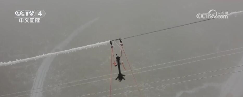 在海拔1400多米的貴州省黔東南苗族侗族自治州,部分地區(qū)最低溫度達到-6℃,供電線路覆冰厚度達11毫米。電力人員運用機械震動除冰裝置,對220千伏施柳線開展除冰。