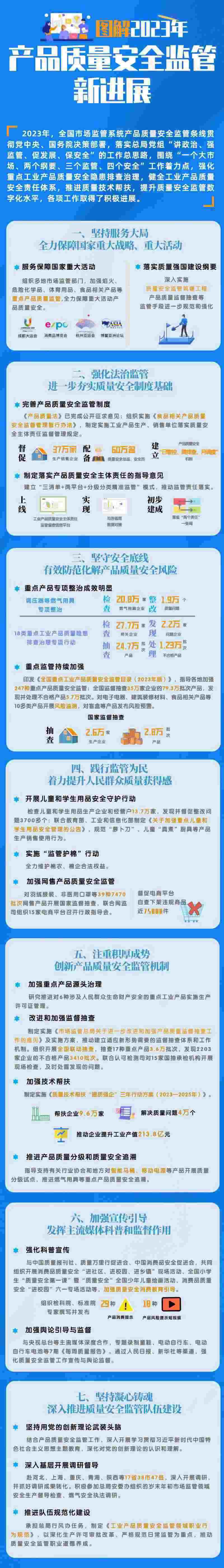 同時(shí)市場(chǎng)監(jiān)管總局2024年將分類制定20種重點(diǎn)工業(yè)品、30種重點(diǎn)消費(fèi)品和13種材質(zhì)食品相關(guān)產(chǎn)品生產(chǎn)單位質(zhì)量安全風(fēng)險(xiǎn)管控清單,對(duì)質(zhì)量下滑明顯、安全隱患突出的高風(fēng)險(xiǎn)產(chǎn)品,研究實(shí)行生產(chǎn)準(zhǔn)入管理。選擇50種關(guān)系國(guó)計(jì)民生、量大面廣、社會(huì)關(guān)注度高的重點(diǎn)產(chǎn)品,連續(xù)開展評(píng)價(jià)性抽查,為分析形勢(shì)、評(píng)估產(chǎn)品質(zhì)量安全狀況提供參考。