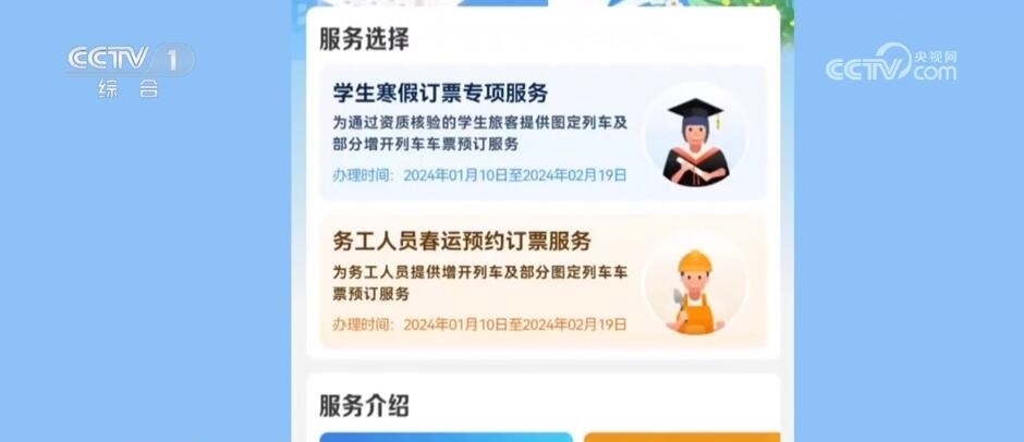 今年春運(yùn),鐵路部門推出預(yù)約購票和預(yù)填購票兩項(xiàng)購票新方式,預(yù)約購票功能專門針對學(xué)生和務(wù)工人員。符合條件的學(xué)生旅客(已通過學(xué)生優(yōu)惠資質(zhì)核驗(yàn)且有剩余優(yōu)惠乘車次數(shù))可通過“學(xué)生寒假訂票專項(xiàng)服務(wù)”專區(qū)預(yù)約購買春運(yùn)期間的火車票。已通過實(shí)名制核驗(yàn)的務(wù)工人員可通過“務(wù)工人員春運(yùn)預(yù)約訂票服務(wù)”專區(qū)預(yù)約購買春運(yùn)期間火車票。