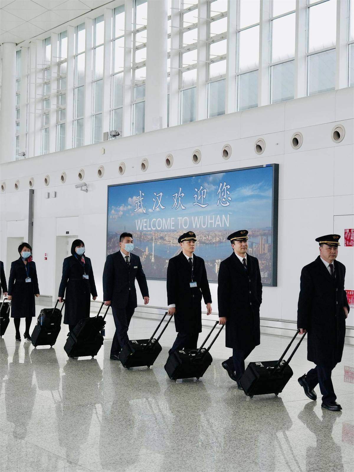 東航機(jī)組從武漢天河機(jī)場出乘。(通訊員 李展鵬 攝)