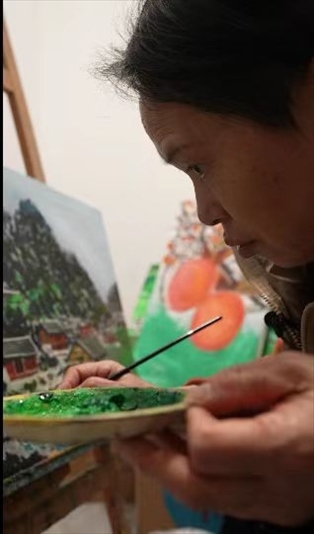 一支畫筆,一盒顏料,一張畫布,這幾乎是雙溪鎮(zhèn)能提供給王柳云的全部。那段時(shí)間,她走街串巷,畫山,畫水,畫民居,也“畫”心。憑著一種隱約的天賦和純天然的熱愛,大概過(guò)了三個(gè)月,王柳云已經(jīng)能大批量地賣畫。