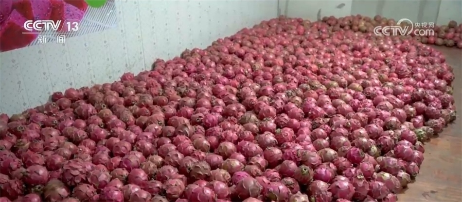 在安徽省肥東縣古城鎮(zhèn)的老張家庭農(nóng)場,一顆顆紅色的火龍果在藤枝上若隱若現(xiàn),迎來豐收。今年,火龍果打開了東南亞的新市場,銷量增長。如何讓大批量火龍果在采摘后、上市前“新鮮常駐”成了果品能否賣個好價錢的關(guān)鍵。為此,當(dāng)?shù)剞r(nóng)業(yè)、林業(yè)、電力等部門為火龍果建立了專門的凍庫,對新采摘的火龍果進行轉(zhuǎn)運冷藏,延長火龍果銷售時間,助力果農(nóng)增收。