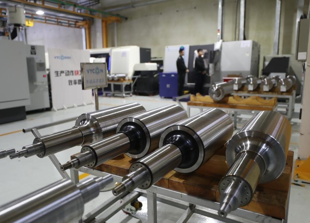 在沈陽微控新能源技術有限公司車間拍攝的由航天級合金鋼材制成的轉子(2023年11月29日攝)。新華社記者 楊青 攝