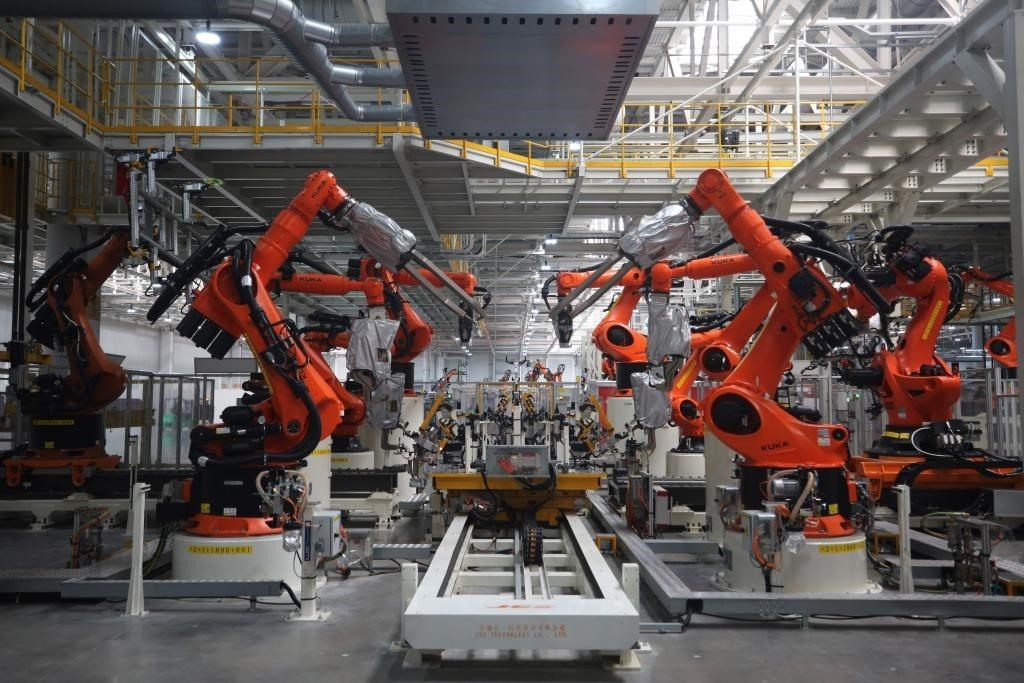 大眾安徽模塊化電驅動平臺工廠車身車間一角。(2023年5月29日攝)新華社記者 杜瀟逸 攝