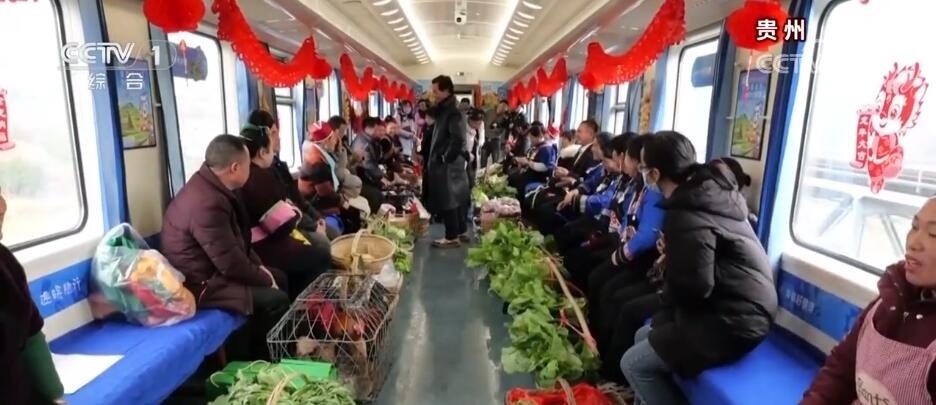 買年貨,除了商超、集市,批發(fā)市場,還可以在火車上。在貴州,有一趟往返于貴陽與玉屏之間的“慢火車”5640次列車,里面專設(shè)了一個(gè)農(nóng)特產(chǎn)品車廂。新春臨近,列車上的農(nóng)特產(chǎn)品車廂變得熱鬧起來,村民們將自家養(yǎng)殖的土雞、雞蛋,熏制的香腸、臘肉,以及水果、蔬菜帶上列車,向旅客現(xiàn)場售賣,車廂里喜氣洋洋。