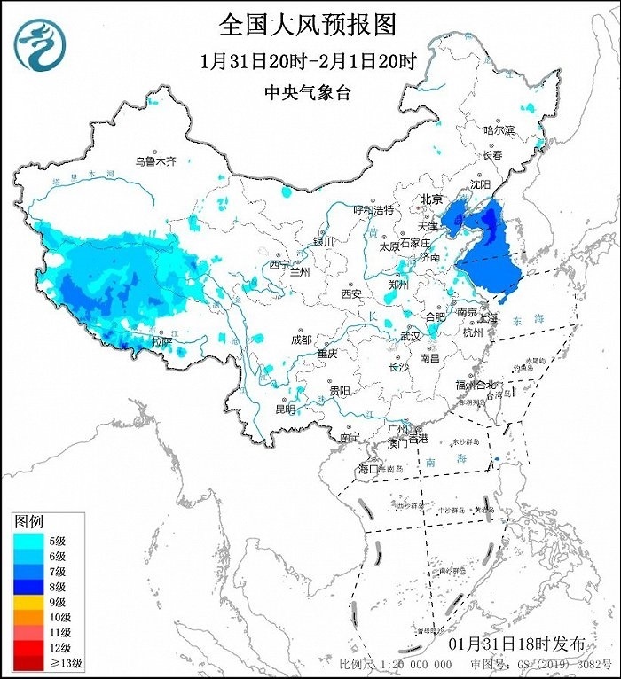中央氣象臺1月31日18時發(fā)布大風(fēng)藍(lán)色預(yù)警:預(yù)計(jì),1月31日20時至2月1日20時,渤海、渤海海峽、黃海大部海域?qū)⒂?~8級、陣風(fēng)9~10級的偏北到東北風(fēng)。