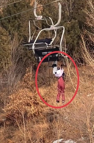 ·遼寧營口一小孩坐纜車時滑落車外懸掛空中,當?shù)匚穆镁只貞盒『⑺阶越獬踩胧?,已及時救援,小孩未受傷。