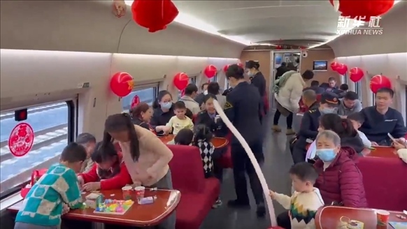 ·今年春運期間,自廈門始發(fā)開往北京、上海、南京等方向的部分16節(jié)車廂“長編組”高鐵列車開設了“遛娃艙”,供帶娃家庭使用。