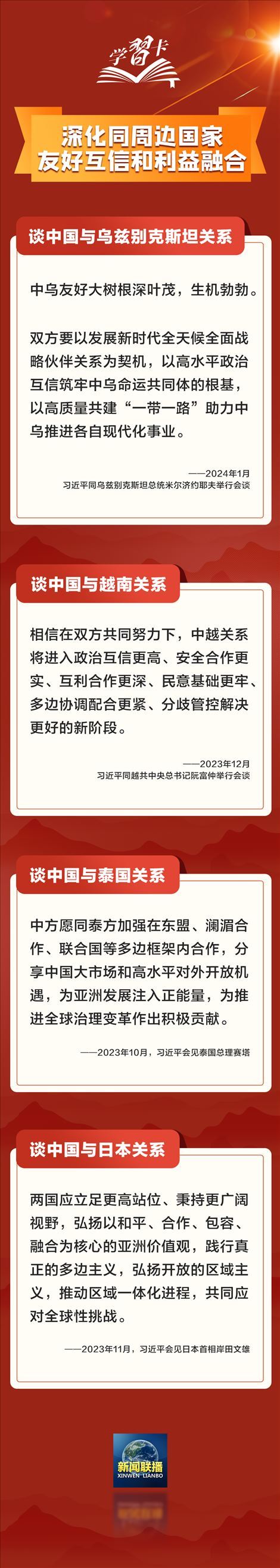 推動(dòng)構(gòu)建新型國際關(guān)系,打造覆蓋全球的“朋友圈”,習(xí)近平主席在多場(chǎng)外事會(huì)見中提出鮮明主張,一起學(xué)習(xí)↓↓↓