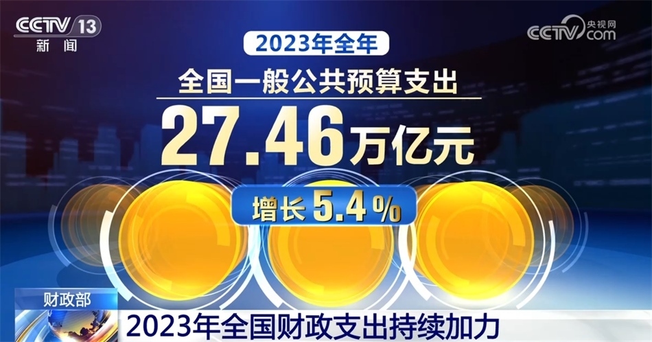 2023年,財(cái)政收入保持恢復(fù)性增長(zhǎng)態(tài)勢(shì),財(cái)政支出持續(xù)加力。具體來看,去年年初,財(cái)政赤字率按3%安排。同時(shí),為支持災(zāi)后恢復(fù)重建和提升防災(zāi)減災(zāi)救災(zāi)能力,去年四季度增發(fā)1萬億元國(guó)債,全部通過轉(zhuǎn)移支付安排給地方。2023年全年,全國(guó)一般公共預(yù)算支出27.46萬億元,增長(zhǎng)5.4%。社會(huì)保障和就業(yè)、教育、科學(xué)技術(shù)、農(nóng)林水、城鄉(xiāng)社區(qū)等重點(diǎn)支出領(lǐng)域保障有力。