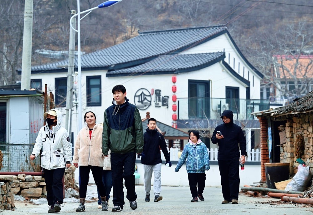 2024年1月30日,游客在天津市薊州區(qū)下營(yíng)鎮(zhèn)前干澗村游玩。新華社記者 趙子碩 攝