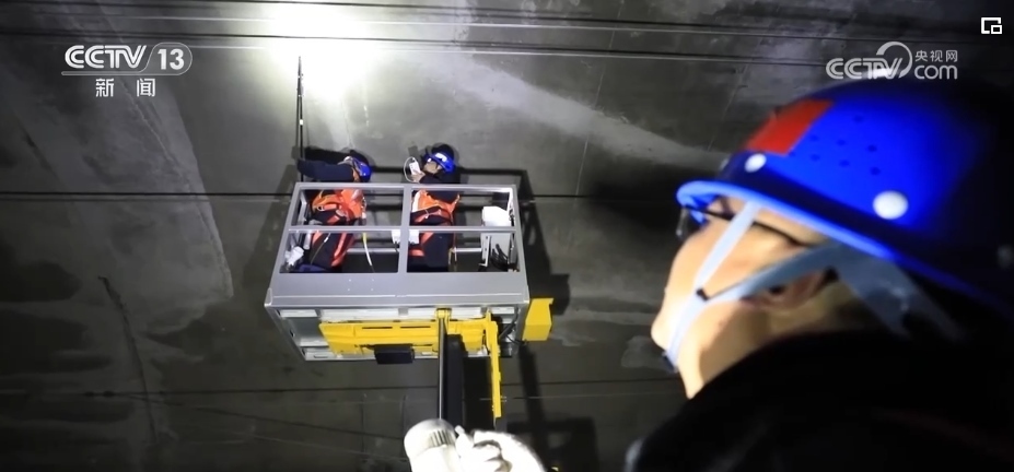 兩個(gè)8米高的作業(yè)平臺(tái),10公斤重的敲擊桿,在與隧道壁的撞擊聲和作業(yè)車的風(fēng)笛聲中,高鐵橋隧工們開始了工作。