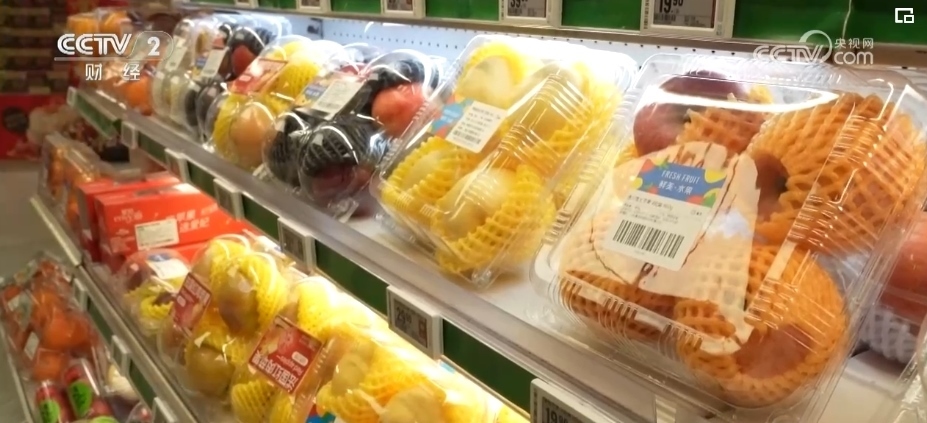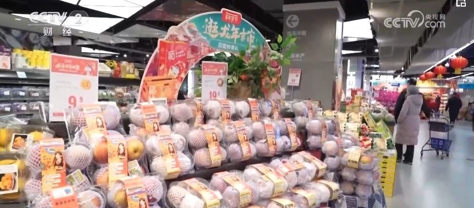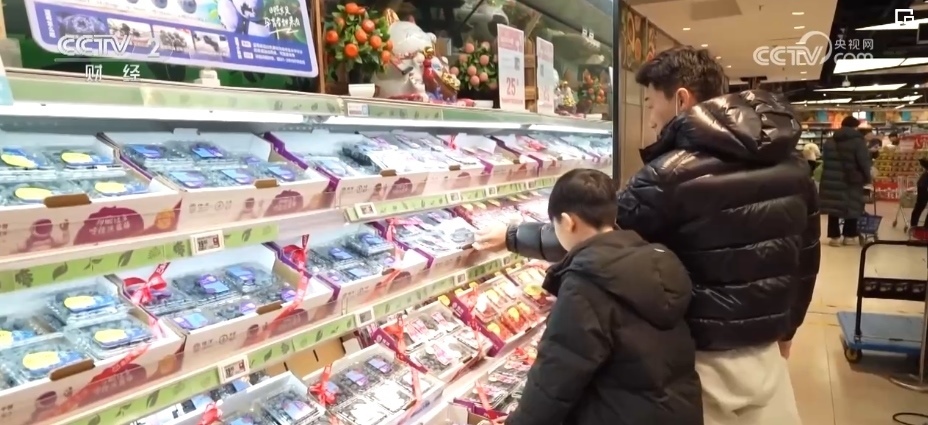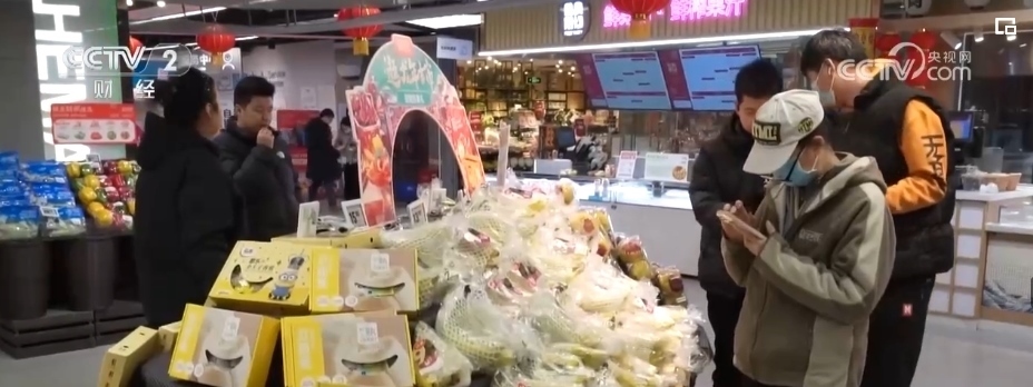 除了蘋果,各類葡萄、柑橘、車厘子、草莓、藍莓、菠蘿、榴蓮等水果也大量上市。僅記者采訪的這家生鮮超市,新奇特品種相比2023年,就有5%—10%的增長,春節(jié)前更是有100多款水果在店內銷售,豐富了百姓的“果盤子”。