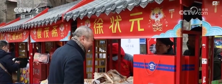 線上有“網(wǎng)上年貨節(jié)”, 線下有2024全國“老字號嘉年華”。在山東淄博,“老字號國貨潮品年貨大集”在周村古商城鳴鑼開市,匯集了淄博50余家老字號企業(yè)300余種產品。