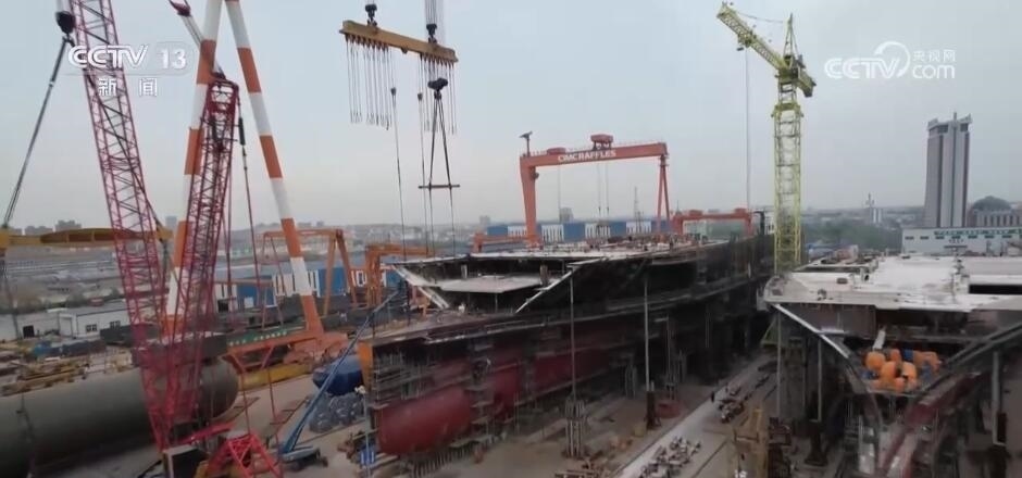 記者來(lái)到位于山東煙臺(tái)的中集來(lái)福士龍口基地,40萬(wàn)平方米的生產(chǎn)基地上共有四個(gè)船臺(tái)生產(chǎn)線,每個(gè)船臺(tái)線都在滿負(fù)荷加緊生產(chǎn)。這個(gè)船臺(tái)上正在建造的是一艘能裝載7000輛汽車的滾裝運(yùn)輸船,將在今年5月份交付給上汽集團(tuán)。