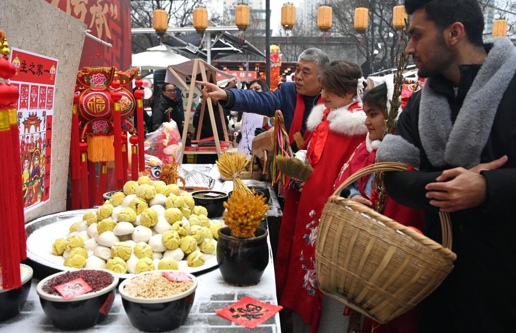 2月2日,在西安永興坊舉行的小年活動(dòng)上,來自西安各大學(xué)的留學(xué)生在民俗專家的講解下了解小年祭灶所用的物品。新華社記者 劉瀟 攝