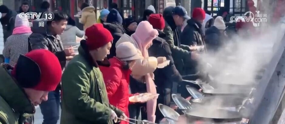 總臺記者 王亞平:我現(xiàn)在就是在長春市蓮花島年貨大集。這會兒大集上香氣撲鼻,每口鐵鍋前都圍滿了品嘗美味的人們。室外冒著寒氣,食客嘴里吐著哈氣,用東北話講,吃得“嘎嘎香”。