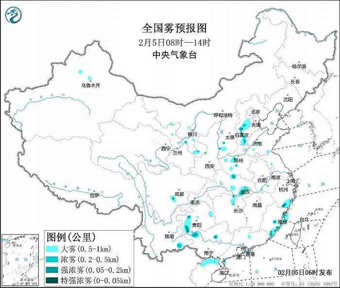 預(yù)計,5日早晨至上午,雷州半島沿岸海域、粵西沿岸海域、北部灣偏北海域、福建沿岸的部分海域?qū)⒂写箪F,能見度不足1公里。此外,河北西部、山西西南部、河南南部、湖北中東部、浙江東南部、福建東部、貴州西部等地有大霧天氣,局地有能見度不足200米的強濃霧。