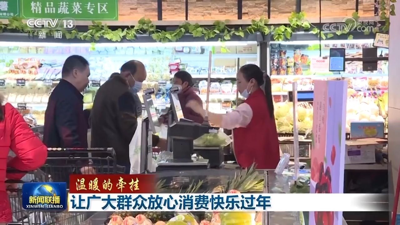 央視網(wǎng)消息(新聞聯(lián)播):春節(jié)是中國(guó)最重要的傳統(tǒng)節(jié)日。習(xí)近平總書(shū)記在天津考察時(shí)強(qiáng)調(diào),各級(jí)黨委和政府要加強(qiáng)節(jié)日期間民生商品的產(chǎn)銷(xiāo)保供,確保數(shù)量充足、品類(lèi)豐富、質(zhì)量可靠,讓廣大群眾放心消費(fèi)、快樂(lè)過(guò)年。春節(jié)前夕,從中央到地方,多措并舉,保障春節(jié)期間市場(chǎng)供應(yīng),穩(wěn)定消費(fèi)市場(chǎng)價(jià)格,節(jié)日市場(chǎng)貨品豐富,供應(yīng)充足。