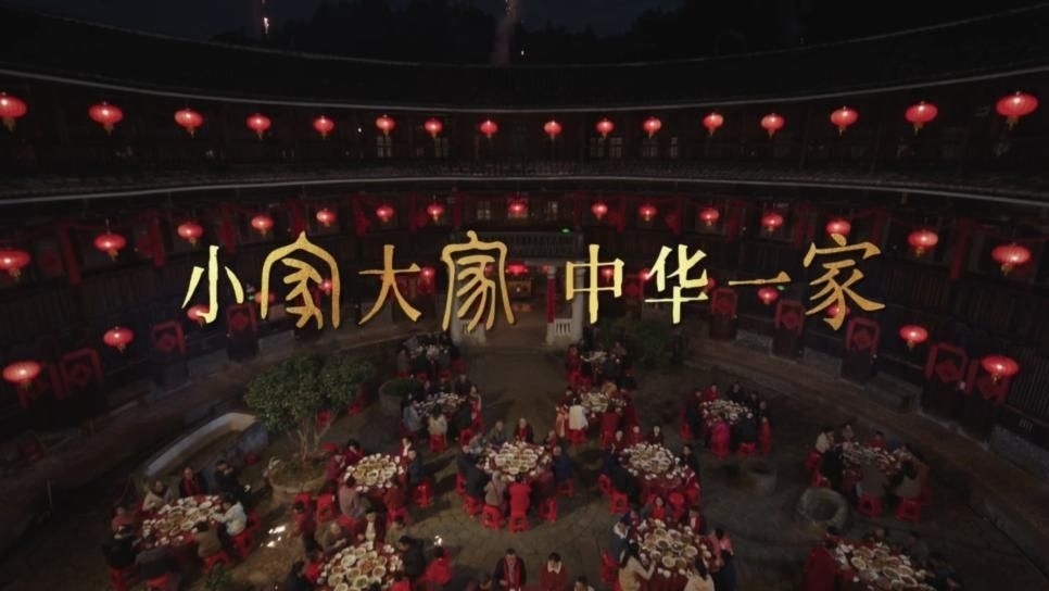影片的結(jié)束語是點睛之筆:“我們相稱相謂,只因相愛相親。小家大家,中華一家。” 使用了金文、篆書、楷體三種不同時期的字體展現(xiàn)一句話里的三個“家”字,巧妙地把數(shù)千年來中華傳統(tǒng)文化中“家文化”的源遠流長、傳承至今之意蘊含其中,將家的形式與家的內(nèi)涵完美地融合在一起,既表達了中國人對家的眷戀與倚賴,也體現(xiàn)了對中華大家庭的熱愛與自豪。