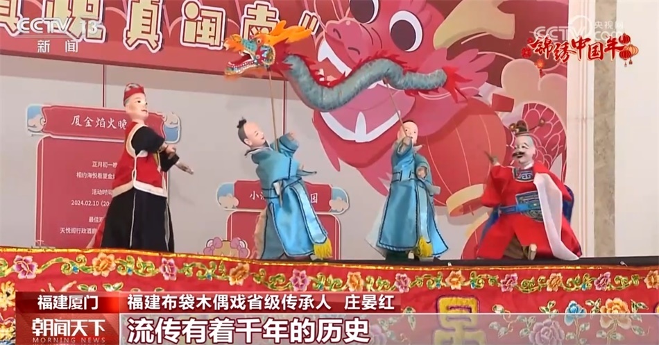同樣在春節(jié)期間受到游客喜愛的還有廈門的非遺項(xiàng)目布袋木偶。莊晏紅是布袋木偶戲演出團(tuán)隊(duì)的一員,她告訴我們,春節(jié)期間,團(tuán)隊(duì)會(huì)有20多場(chǎng)的演出,忙得熱火朝天,在景區(qū)、酒店、藝術(shù)館為游客展示非遺魅力。
