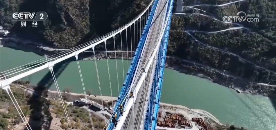 央視網(wǎng)消息:今年,滇藏鐵路麗江至香格里拉段迎來開通后的首個(gè)春運(yùn),在重點(diǎn)控制性工程——虎跳峽金沙江鐵路大橋,一群檢修人員要在距離江面200多米的高空對(duì)大橋進(jìn)行全面檢查,遠(yuǎn)遠(yuǎn)望去就像是在高空“走鋼索”,一起跟隨記者的鏡頭去看看。